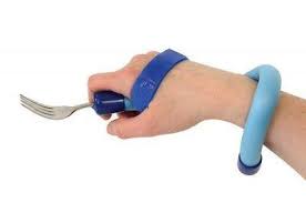 Terapis okupasi dapat merekomendasikan penggunaan Pegangan universal untuk pasien cedera tulang belakang yang kesulitan mencengkeram.