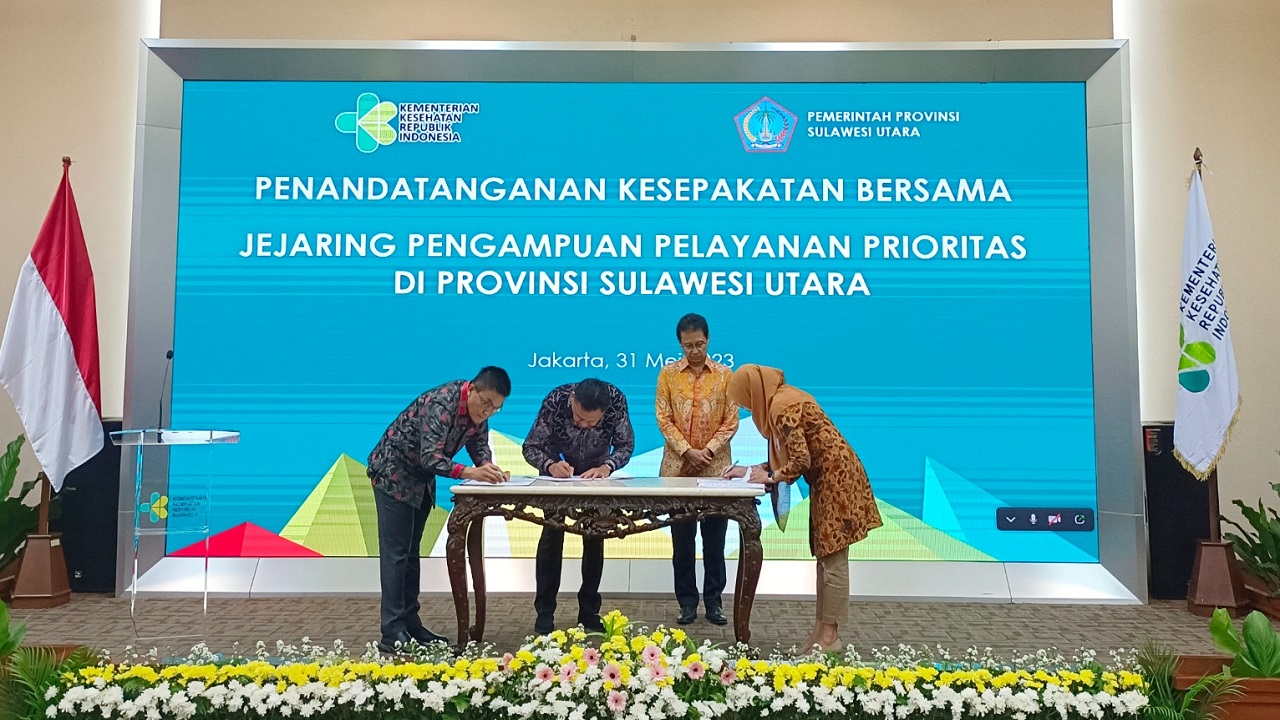 Jakarta (31/05) - Dalam rangka peningkatan mutu pelayanan kesehatan pada rumah sakit di Provinsi Sulawesi Utara, maka telah dilaksanakan penandatanganan Kesepakatan Bersama (Memorandum of Understanding) Pengampuan Layanan Prioritas pada hari Rabu, 31 Mei 2023 Pukul 10.00 WIB-selesai di ruang rapat Kementerian Kesehatan Republik Indonesia.