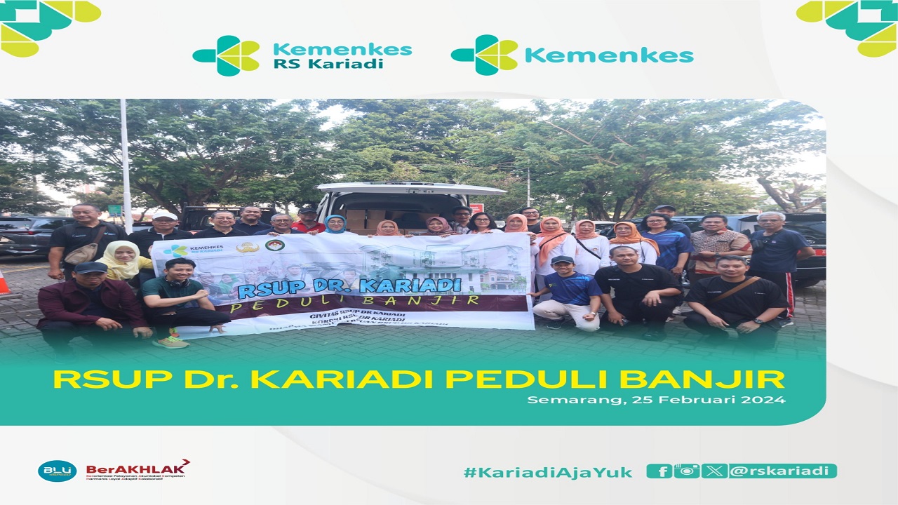 Semarang (25/02) - RSUP Dr. Kariadi bersama KORPRI RSUP Dr. Kariadi dan Dharma Wanita Persatuan RSUP Dr. Kariadi menyelenggarakan kegiatan bakti sosial untuk korban banjir di Karanganyar, Demak. Dalam kegiatan ini 200 paket sembako serta alat kesehatan telah disalurkan melalui perangkat Desa untuk selanjutnya dibagikan kepada masyarakat yang terdampak banjir dan alkes untuk Puskesmas Karanganyar yang juga terdampak banjir. Dalam prosesi pemberangkatan tim peduli banjir RSUP Dr. Kariadi ini dihadir oleh Direktur Utama drg. Farichah Hanum, M.Kes beserta jajarannya.