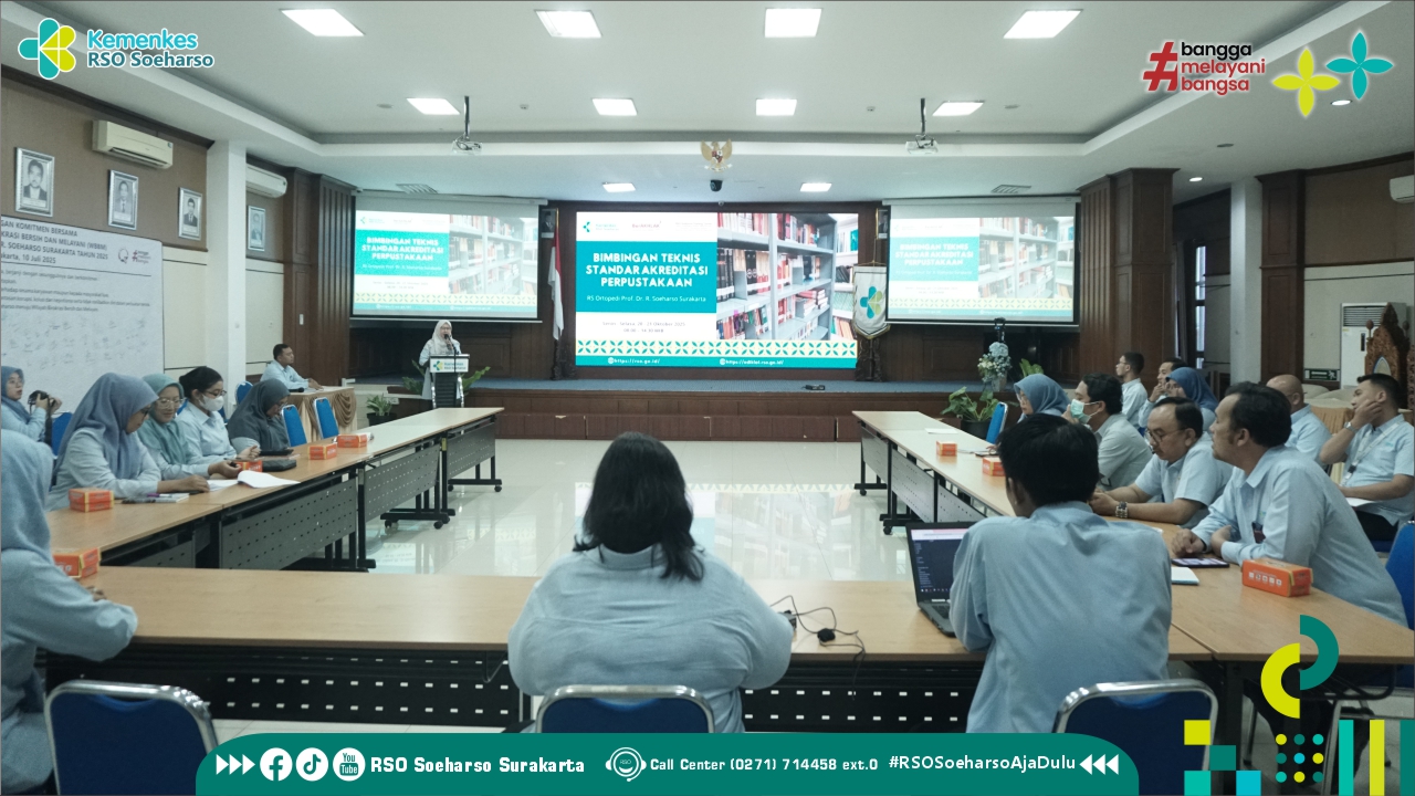 Sukoharjo (20/10) - Bimbingan Teknis Standar Akreditasi Perpustakaan RSO Soeharso Surakarta dilaksanakan di Ruang Auditorium Lt.3 di Gedung Perkantoran. Dengan narasumber Jeni Helen Chronika Sitorus, SH, dari Biro Komunikasi dan Informasi Publik dan Erwan Setyo Budi, S. Hum., dari Poltekkes Kemenkes Semarang, dan Bimtek dibuka oleh Plt. Direktur SDM, Pendidikan dan Penelitian, Dina Sintia Pamela, S. Si. Apt. M. Farm.