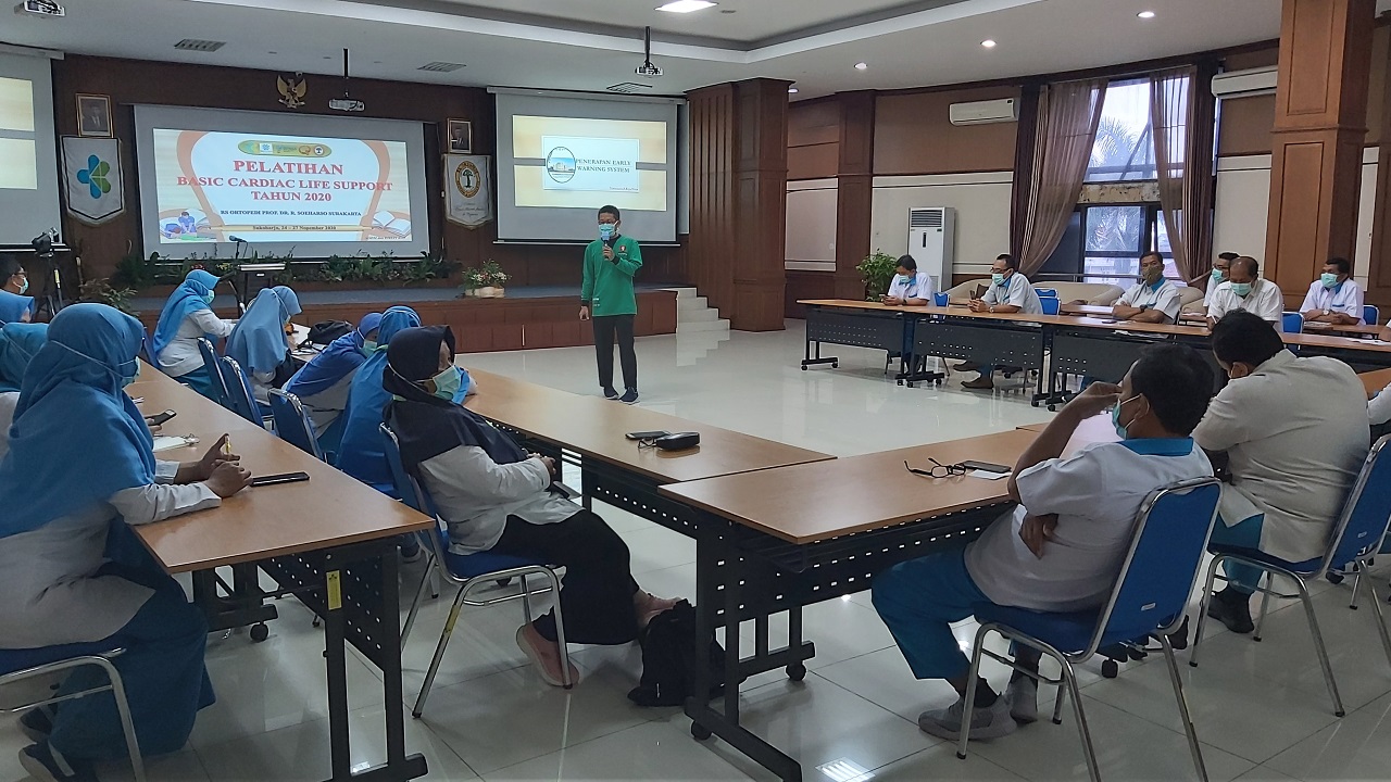 SUKOHARJO - Bagian SDM, Pendidikan dan Penelitian RSO. Prof. Dr.R.Soeharso Surakarta mengadakan kegiatan untuk tenaga para medis dalam pelatihan Basic Cardiac Life Support (BCLS) Th. 2020 di ruang Auditorium lantai 3 Gedung Perkantoran.