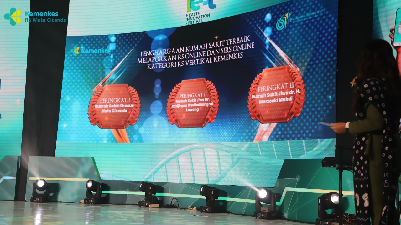 RS Mata Cicendo meraih penghargaan Terbaik I dari Menteri Kesehatan RI yang diberikan oleh Direktur Jenderal Kesehatan Lanjutan untuk Rumah Sakit Terbaik Melaporkan RS Online dan SIRS Online Kategori RS Vertikal Kemenkes, yang diberikan pada acara Hai Fest - Health Innovation Festival di Balai Kartini, Jakarta