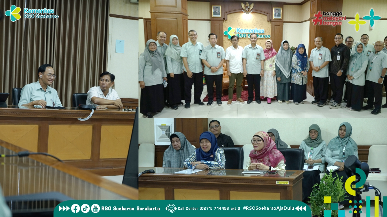 Surakarta (10/12) – RSO Soeharso Surakarta mendapat kunjungan dan koordinasi PKS dari RS AR Fakhrudin UMS Sukoharjo. Direktur Utama RSO Soeharso Surakarta Dr. dr. Romaniyanto, SpOT (K), Spine, MARS. beserta jajaran direksi lainnya serta Ketua Tim Kerja Pelayanan Penunjang, Ketua Tim Kerja Hukum dan Humas, Ketua Tim Kerja Pelaksana Keuangan dan Ketua Tim Kerja Akuntansi dan BMN menerima langsung Tim RS AR Fakhrudin UMS Prof. Dr. dr. EM Sutrisna, M.Kes.,selaku Direktur RS AR Fakhrudin UMS, dr. Purbawati, MPH., selaku Wakil Direktur, dr. Restu