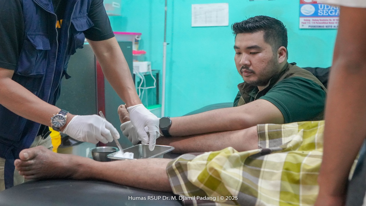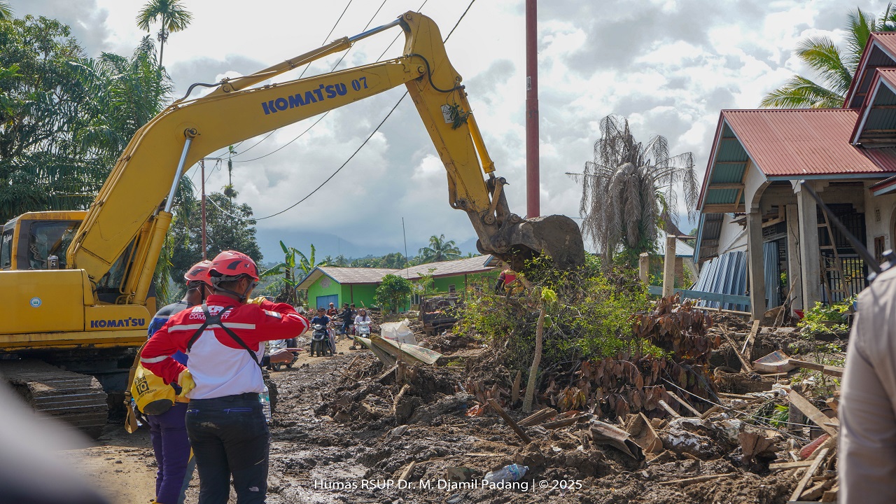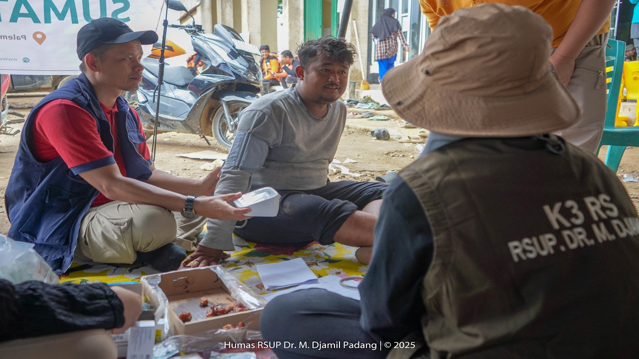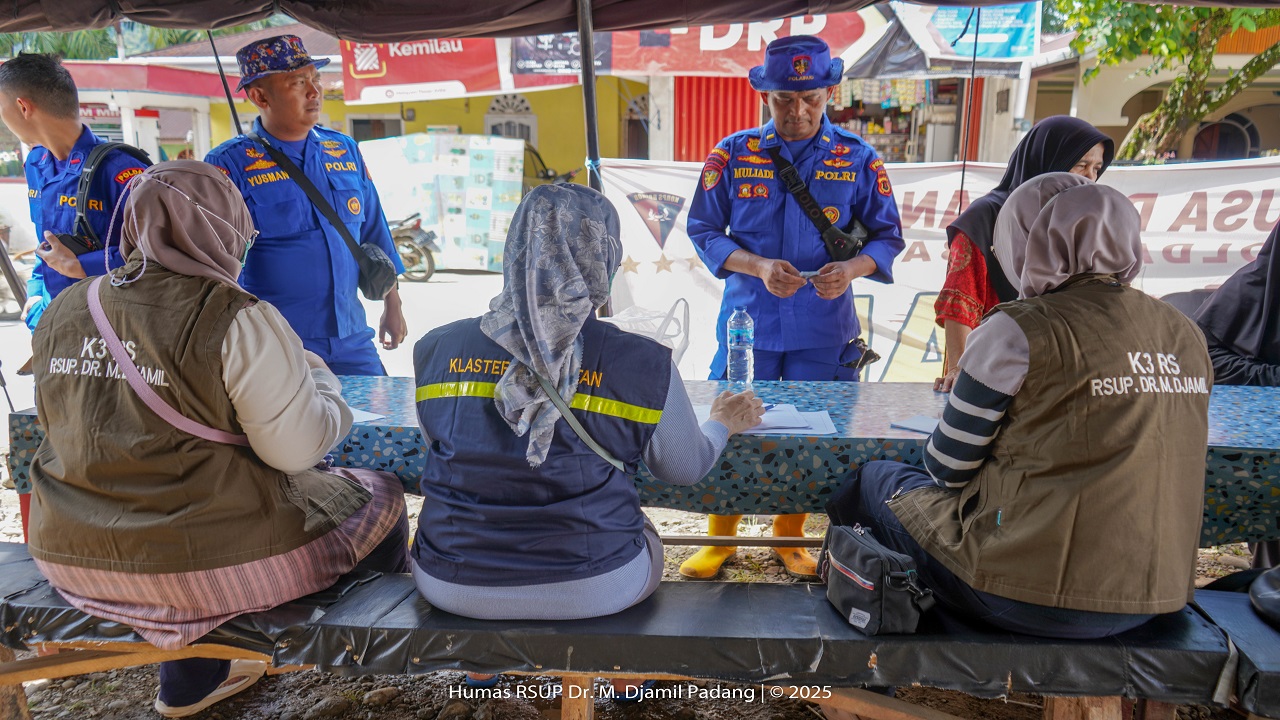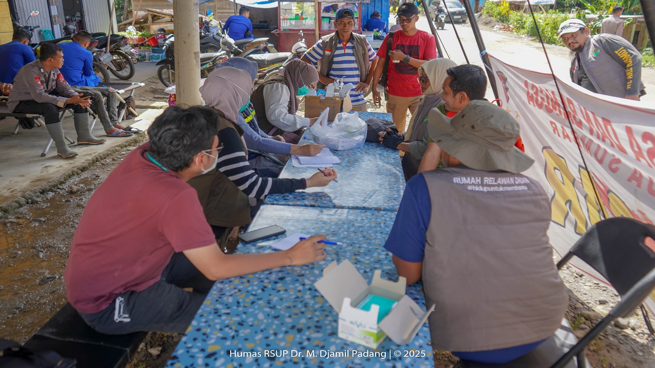 Agam (06/12) - Di hari-hari pasca bencana, langkah-langkah itu bertemu di jalan yang sama, di Nagari Salareh Air Timur dan Tigo Koto Silungkang, Kecamatan Palembayan, Kabupaten Agam, banyak tangan bergerak dalam satu irama, ada yang mengevakuasi, ada yang membersihkan, ada yang menenangkan, dan ada yang merawat. RSUP Dr. M. Djamil hadir bersama tenaga medis, relawan, dan unsur penyelamat lainnya, menembus jarak dan medan untuk memastikan kesehatan masyarakat tetap terjaga. Di tengah keterbatasan pasca bencana, peran medis bukan sekadar mengobati, tetapi menjaga daya tahan tubuh, mendengar keluhan yang terpendam, dan memastikan harapan tetap hidup di setiap titik pemulihan.