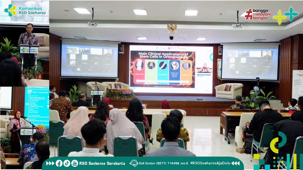 Sukoharjo - Symposium dan Workshop Orthopedic Regeneration Summit berlangsung pada Sabtu, 31 Januari 2026 di Ruang Auditorium lantai 3 Gedung Perkantoran RS Ortopedi Prof. Dr. R. Soeharso Surakarta. Kegiatan ini mengangkat tema prosedur stem cell live untuk penyembuhan tulang belakang, saraf tepi, dan ligamen, menghadirkan diskusi mendalam dan workshop langsung.