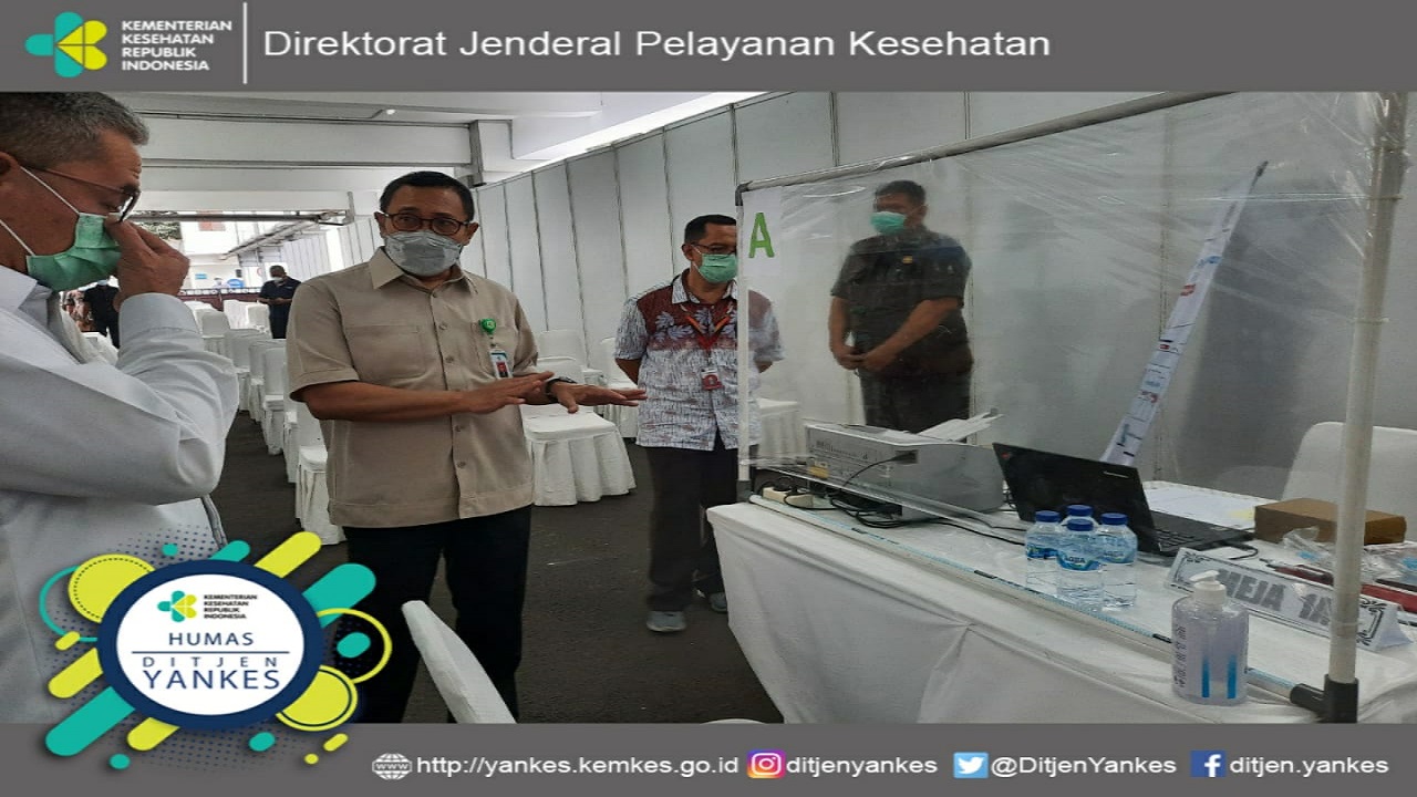 JAKARTA - Direktur Jenderal Pelayanan Kesehatan, Prof. dr. Abdul Kadir, PhD, SpTHT-KL(K), MARS meninjau persiapan pelaksanaan vaksinasi COVID-19 di Kementerian Koordinator Bidang Pembangunan Manusia dan Kebudayaan (8/3).
