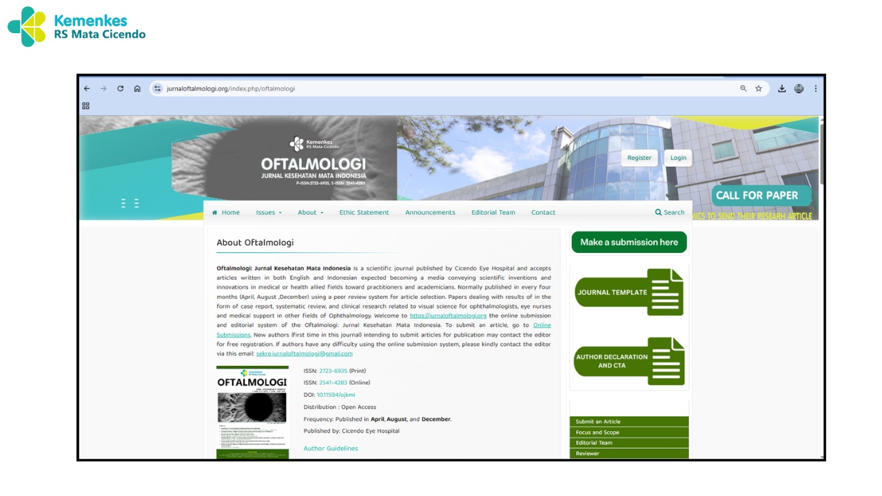 RS Mata Cicendo kembali menorehkan prestasi melalui jurnal ilmiahnya. Oftalmologi: Jurnal Kesehatan Mata Indonesia resmi meraih Akreditasi Baru Peringkat 4 (SINTA 4) pada Periode 2 Tahun 2025. Pencapaian ini berlaku mulai Volume 5 Nomor 1 Tahun 2023 hingga Volume 9 Nomor 2 Tahun 2027, sebagai bentuk komitmen dalam menghadirkan publikasi ilmiah berkualitas di bidang kesehatan mata.