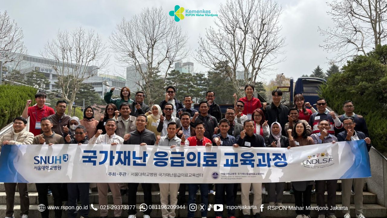 Kepala Instalasi Rawat Inap RSPON Mahar Mardjono, dr. Elda Bernia Bangun, MARS, bersama perawat IGD, Dwi Candra Ari Saputra, S.Kep., Ners, mengikuti Training of Trainers Disaster (TOT) Management di Korea Selatan tanggal 6 – 17 April 2026.