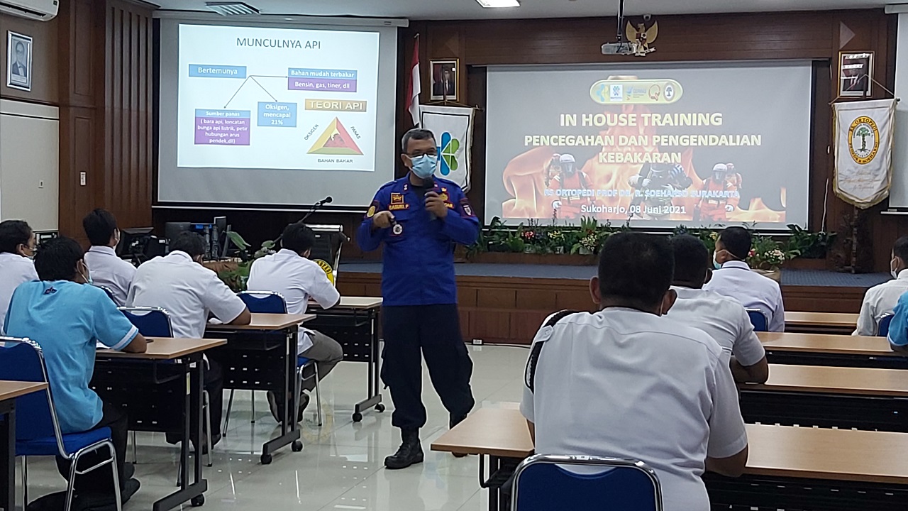 SURAKARTA - Selasa tanggal 8 Juni 2021 telah diadakan In House Training di RSO. Prof.Dr.R.Soeharso Surakarta dengan tema "Pencegahan & Pengendalian Kebakaran".