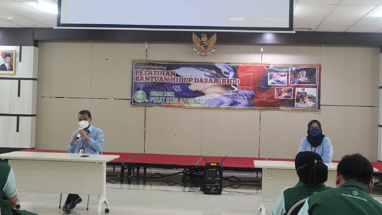 JAKARTA - Pada Rabu 30 Maret 2022, bertempat di Aula Gedung B lantai 16, Bagian Pengembangan SDM, Pendidikan dan Penelitian Rumah Sakit Pusat Otak Nasional Prof. Dr. dr. Mahar Mardjono Jakarta menyelenggarakan pelatihan Bantuan Hidup Dasar (BHD) kepada seluruh pegawai cleaning service yang bekerja di Rumah Sakit Pusat Otak Nasional Prof. Dr. dr. Mahar Mardjono Jakarta. Pelatihan BHD merupakan pelatihan yang sangat penting, yang wajib diberikan kepada seluruh pegawai yang bekerja di rumah sakit, salah satu tujuannya yaitu agar dapat memberikan bantuan kepada orang yang tiba-tiba mengalami kondisi sakit, yang memerlukan pertolongan segera. Hadir untuk membuka acara, yaitu Direktur SDM, Pendidikan dan Umum, Dr. dr. Andi Basuki Prima Birawa, Sp.S (K), MARS, serta Koordinator SDM dan Pendidikan Dra. Nura Ridhawati, M.Si dan Sub. Koordinator Pengembangan SDM, Pendidikan dan Penelitian Eny Meiliya, S.Kep. NS., MKM. Hadir sebagai narasumber pelatihan BHD, yaitu Putri Budi Utami, AMK, Agnes Elisabeth Tamama Malalu, S.Kep., NERS, dan Darsono, AMK (Ruly Humas)